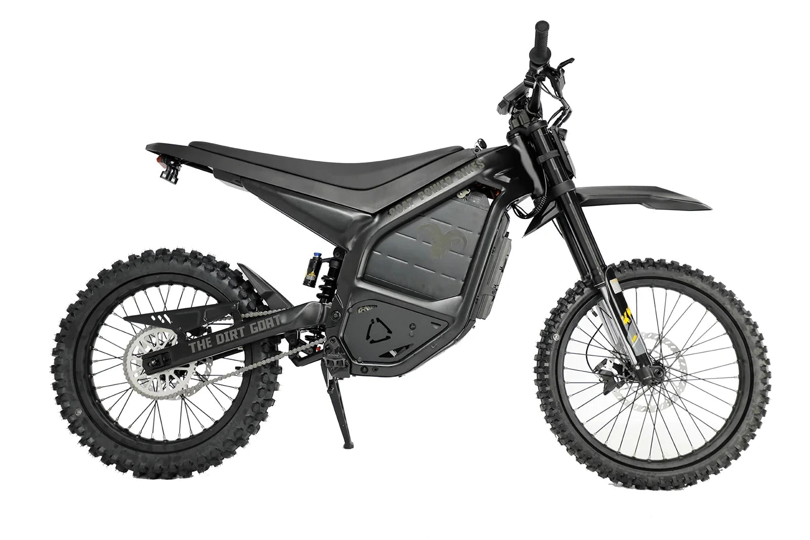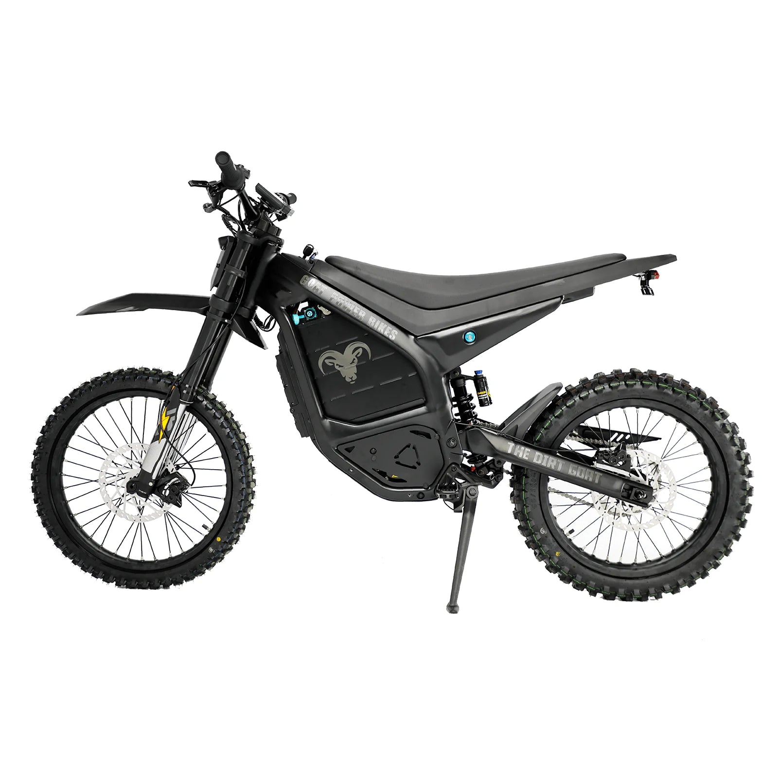 The Dirt Goat 72V brings high-performance capabilities to a more approachable power level, perfect for versatile riders who want a balance between power and control. Featuring a 3,000W Bafang motor with a peak output of 7,500W, this model reaches speeds up to 55MPH. Paired with a 72V 30AH battery, the Dirt Goat 72V offers a range of up to 50 miles, ideal for off-road adventures and trail riding.